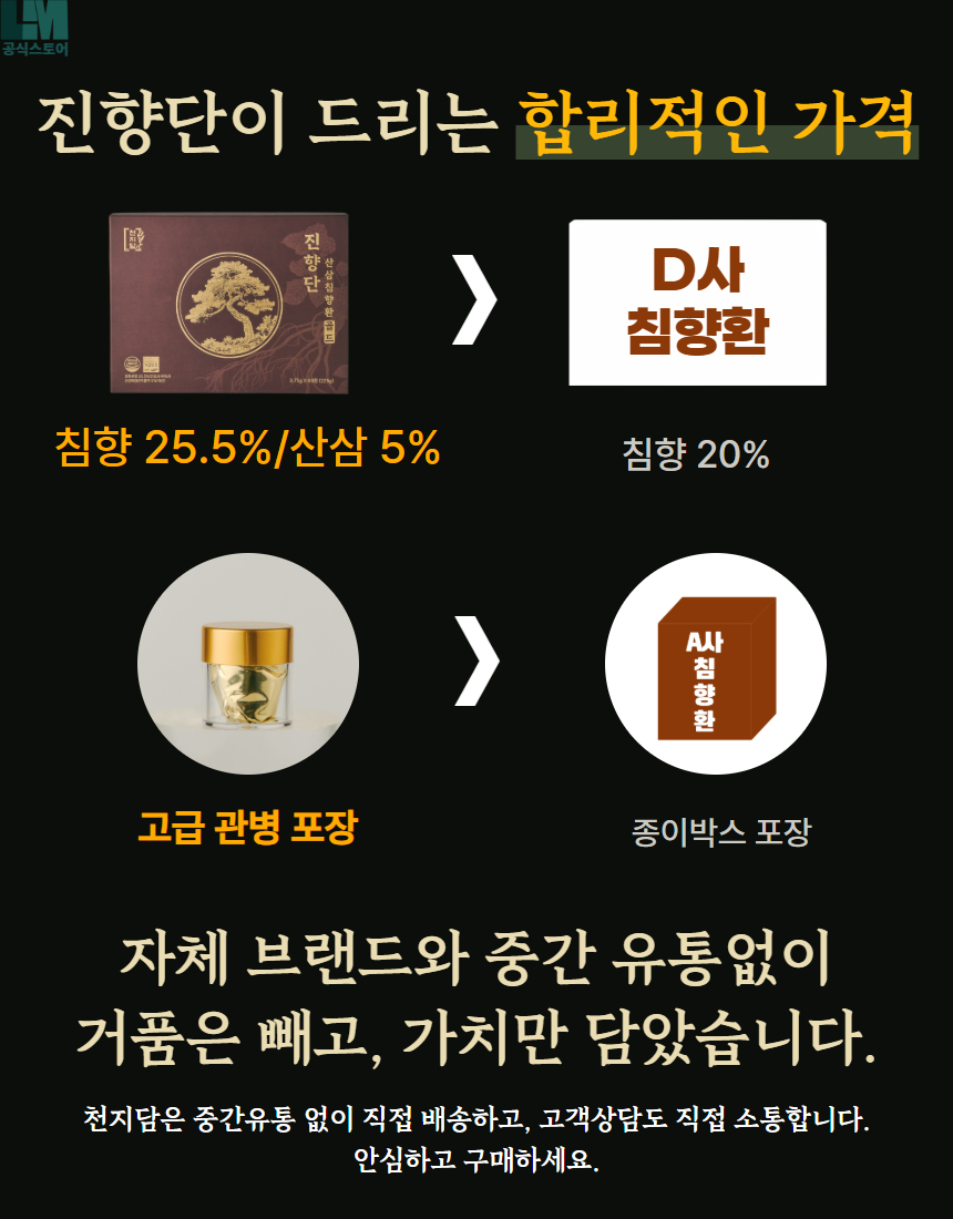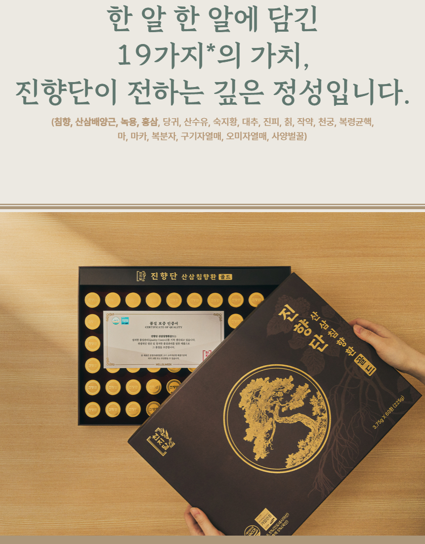 [침향 25.5%/산삼 5%] 진향단 산삼침향환 골드 3.75g 60환(쇼핑백/홍삼/녹용)